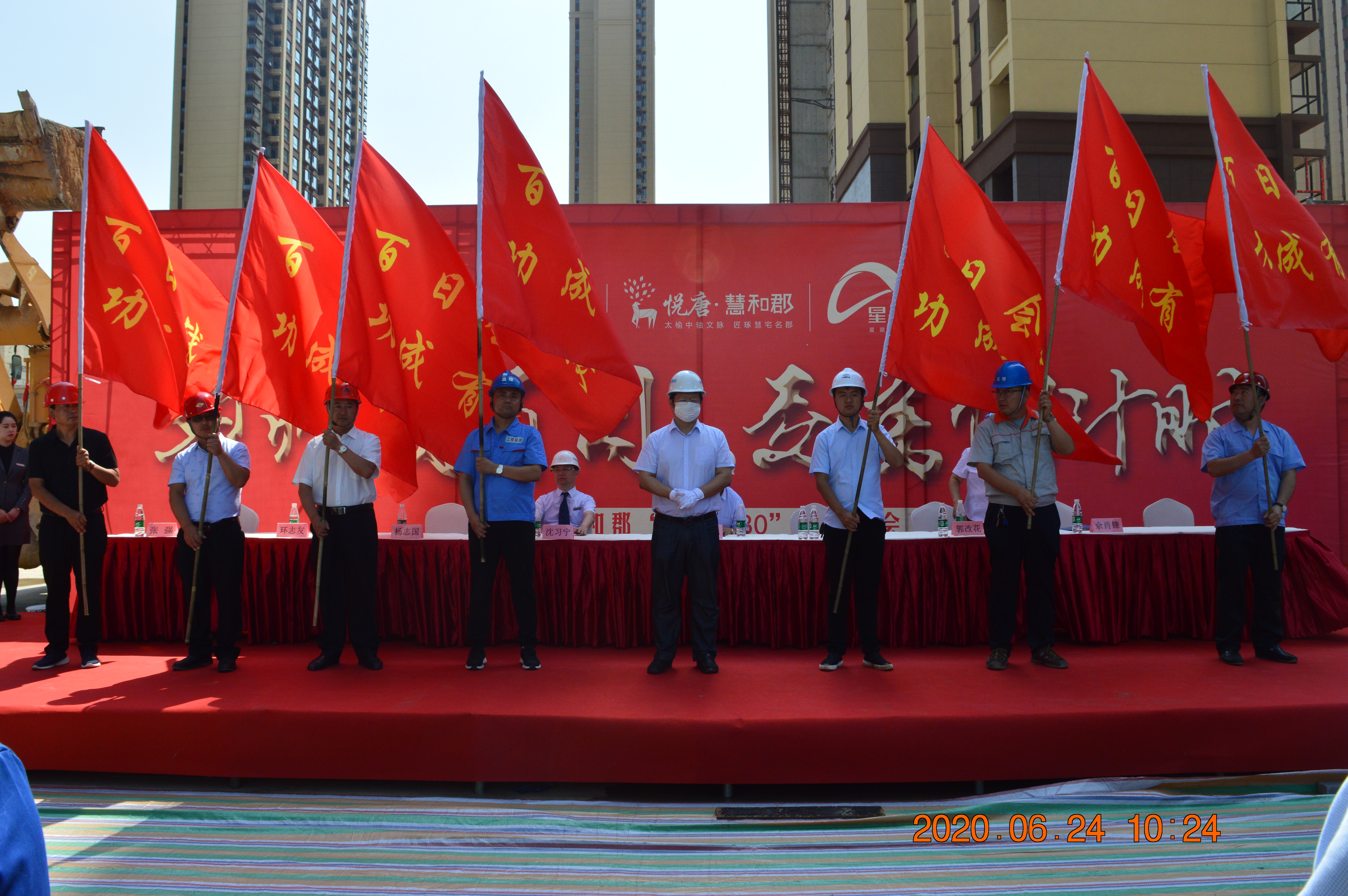 誓師戰(zhàn)百日,交房倒計時!為全力保證項目交房任務(wù)圓滿完成,嚴(yán)格兌現(xiàn)向廣大業(yè)主的承諾,2020年6月24日上午,山西悅唐房地產(chǎn)開發(fā)有限公司組織進(jìn)行“施工現(xiàn)場觀摩檢查暨工程百日會戰(zhàn)誓師大會”。中維控股集團(tuán)董事長郭秀忠先生、總裁郭雅磊先生,悅唐地產(chǎn)執(zhí)行總經(jīng)理郭改花女士、總工程師張強(qiáng)先生,以及項目各總包、監(jiān)理、分包單位負(fù)責(zé)人等主要領(lǐng)導(dǎo),中維控股集團(tuán)、各參建單位員工代表參與本次活動。