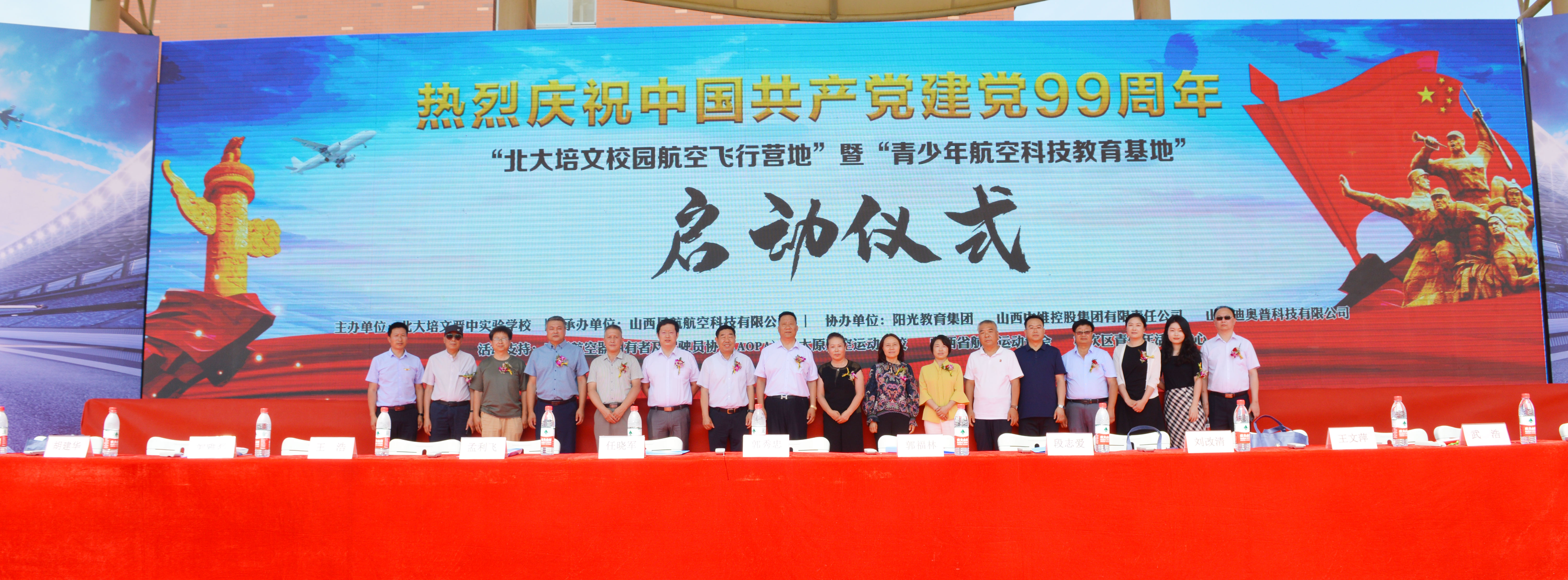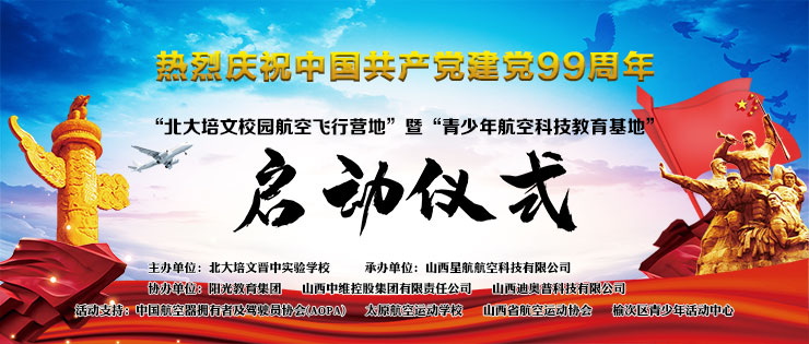 在中國共產黨誕辰99周年之際,為了進一步培養(yǎng)青少年的航空愛國精神、全面推動山西省航空特色教育發(fā)展,實現(xiàn)省通用航空產業(yè)的全鏈接。北大培文晉中實驗學校于2020年7月1日上午八點隆重舉行了“校園航空飛行營地”暨“青少年航空科技教育基地”啟動儀式。
