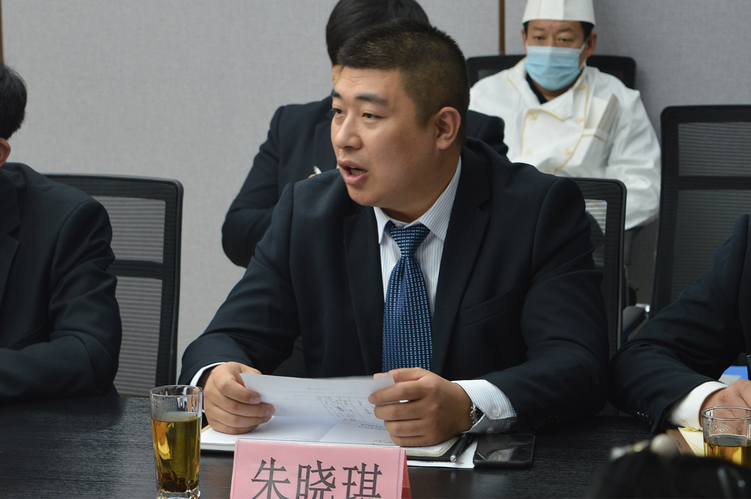 朱曉琪作為星雅酒店新任總經(jīng)理與學(xué)校食堂總經(jīng)理李喜亮、凱迪幼兒園后勤主任王麗宏先后進行了表態(tài)發(fā)言。