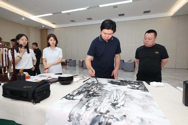 湖南省衡陽市書畫院資深書畫家郭健大師、山西大學(xué)美術(shù)學(xué)院常瀟教授等書畫名家現(xiàn)場潑墨,以精湛技藝點(diǎn)亮藝術(shù)空間。