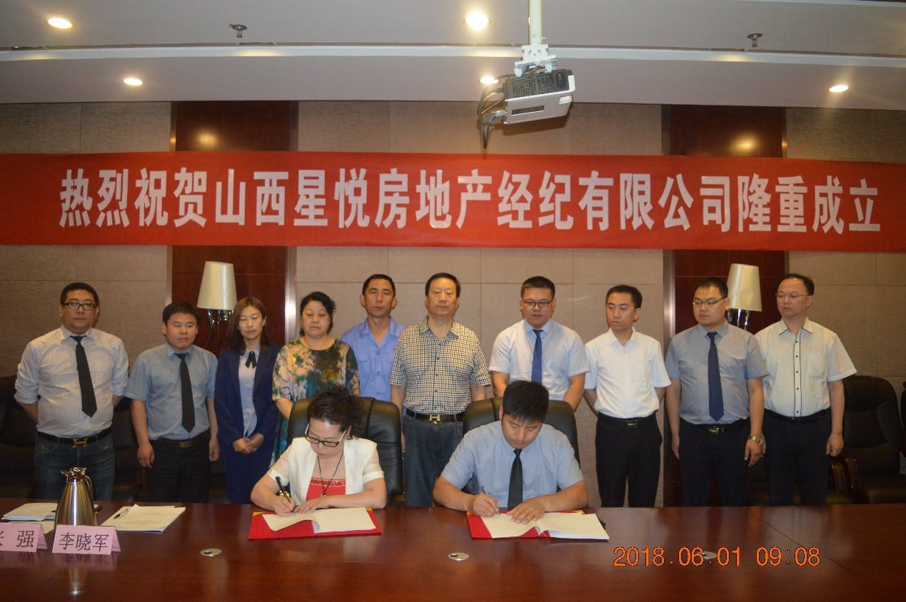 2018年6月1日上午9時,“山西星悅房地產(chǎn)經(jīng)紀有限公司成立大會暨簽約儀式”在星雅名都酒店4樓會議廳隆重舉行。集團董事長總裁郭秀忠、副總裁王文萍、郭雅維、董事長助理沈習寧、經(jīng)...
